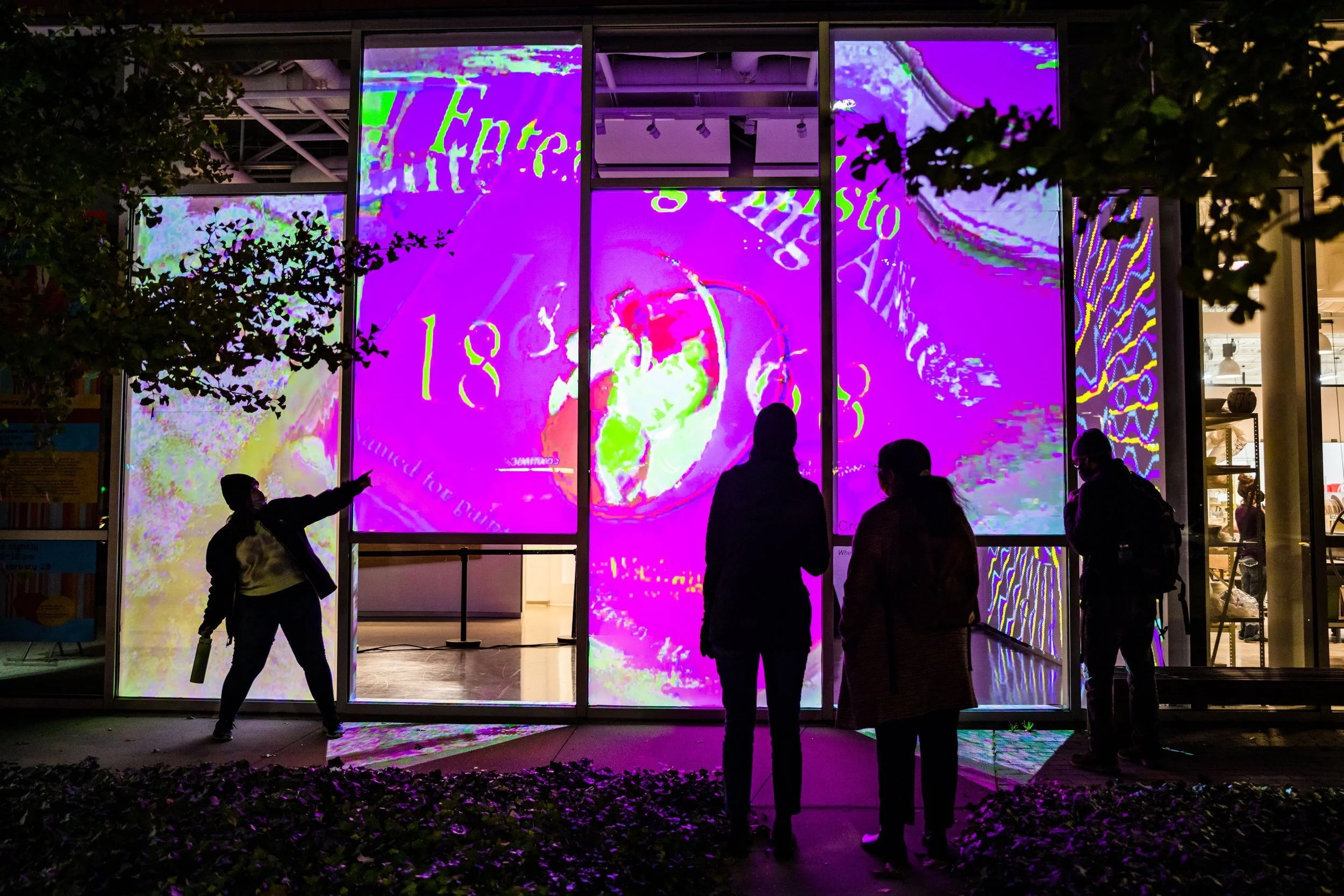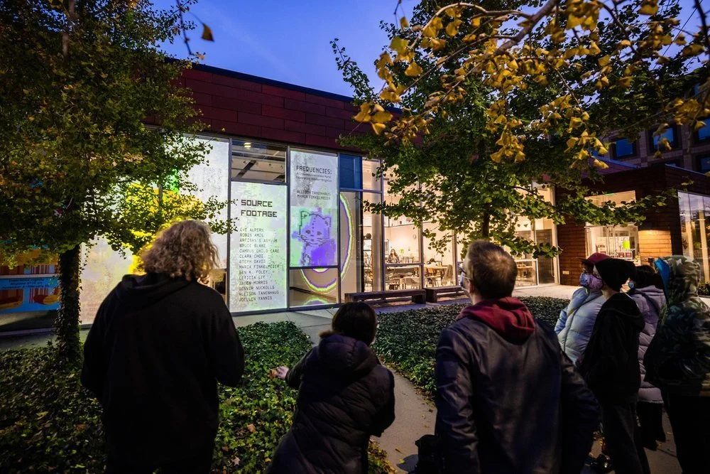 Fittingly, for our first blog of 2022 we are revisiting the subject of our last blog of 2021: FREQUENCIES. Way back in September 2021, we told you all about this collaboration between mfD and visual artist, Allison Tanenhaus at the Harvard Ed Portal, in which crowd-sourced multimedia material of the Allston-Brighton neighborhood would be turned into an audio/visual mural to be beamed nightly for a first round showing in November and December. At the time, “Frequencies” was just in it’s beginning stages, but since then, it has lit up the night and will continue to do so every night from 5:00 - 10:00 PM through February 28.